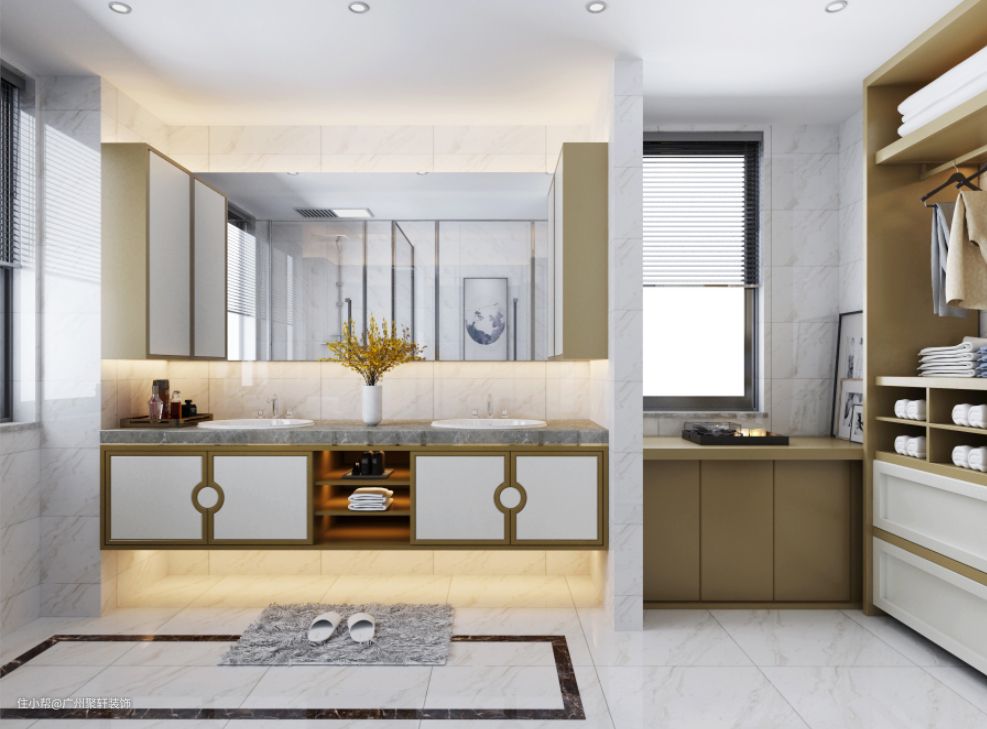 从空间面积来说,选择洗漱台外置的设计无非两种。