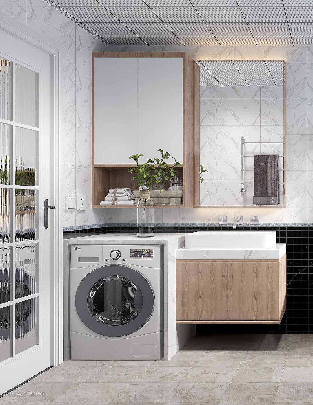 洗手台还可以与玄关柜结合起来。