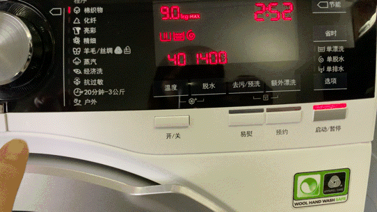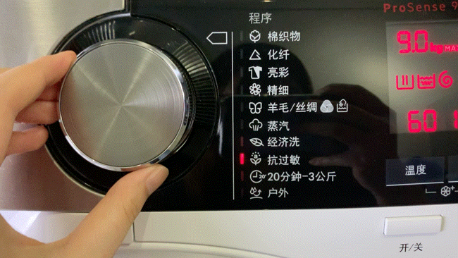 ▲功能选择区没有过多的按钮,化繁为简一颗金属镀层旋钮用来选择洗涤程序。实际操作起来阻尼反馈恰到好处