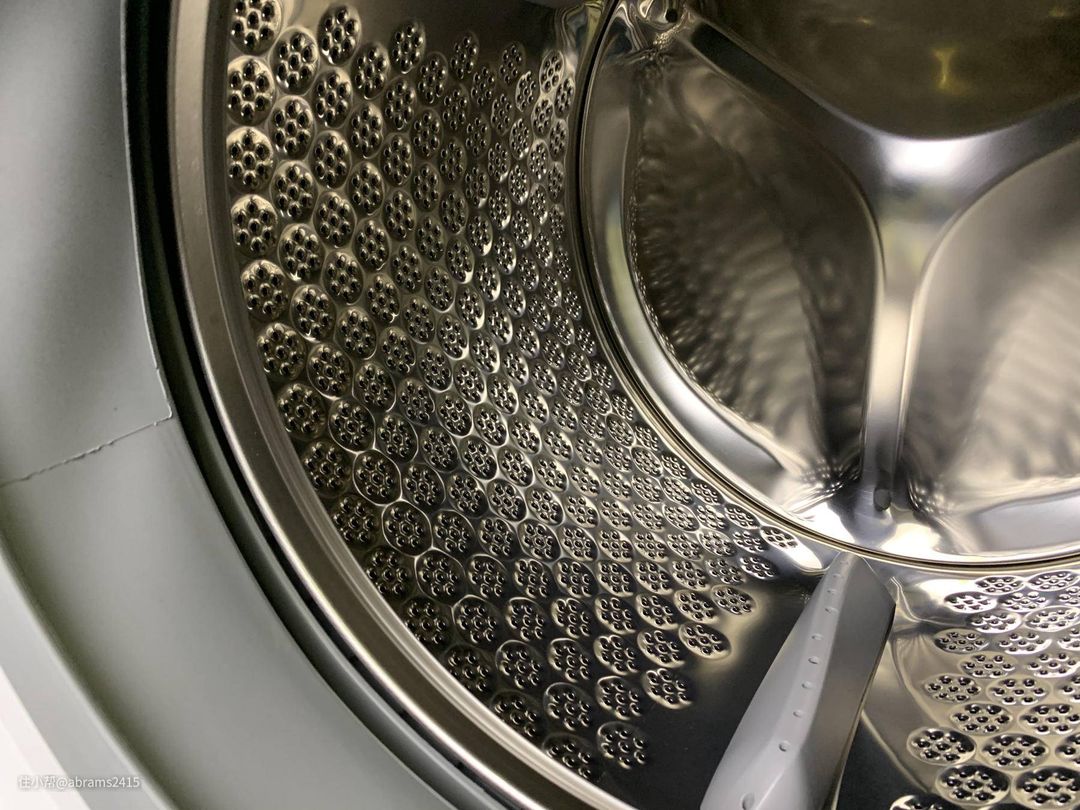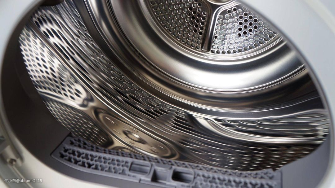 ▲这台AEG T9热泵干衣机滚筒形状特写:这种特殊的波点设计用来对衣物形成气垫保护,同时将精致织物紧贴筒壁,保证其不变形并呈现光滑质感,有效实现各种织物的烘干