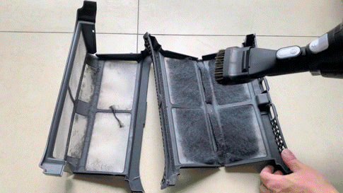 ▲底部热交换器冷风进口:为保证烘干效率,每次烘干后都需用吸尘器对其进行清理
