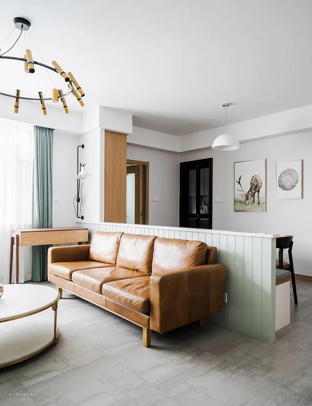 如果觉得沙发背后没有靠山,可以在杀背后加矮墙设计,或家具隔断也是不错。不会影响空间采光,而且给人感觉踏实有靠山。