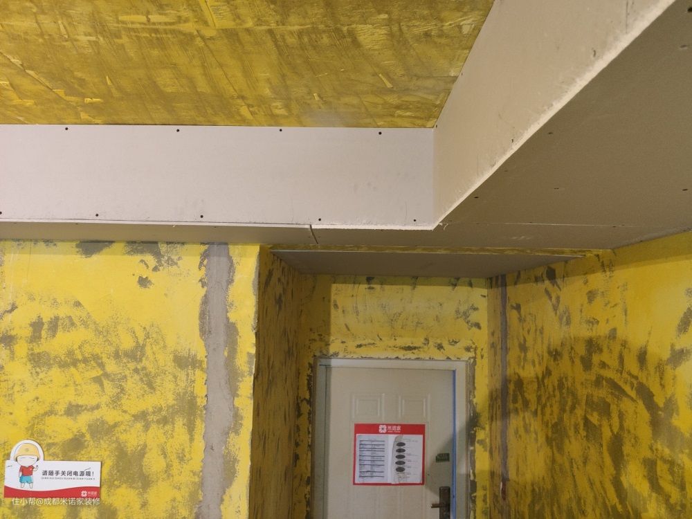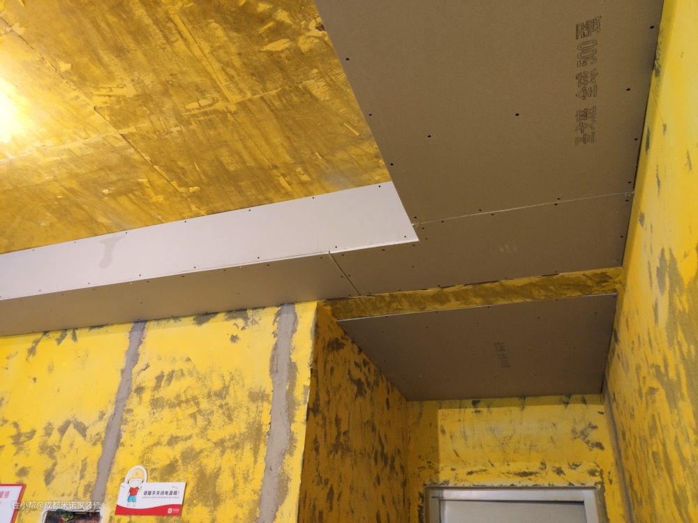 3、石膏板转角处采用7字型转角工艺。整板的拼接加大了受力度,使转角无接缝,这样做出的吊顶更加坚固耐用,有效抗开裂,防止转角拼接开裂。
