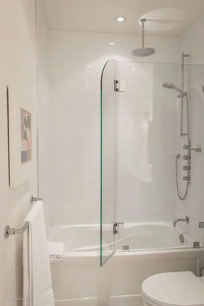 或者是装浴缸的卫生间,也可以有个非常干净的淋浴房,在浴缸上安装带有门扇的玻璃,轻轻松松就成了一个淋浴房;装个顶喷花洒或壁挂花洒,都不会有水溅在马桶或地面上。