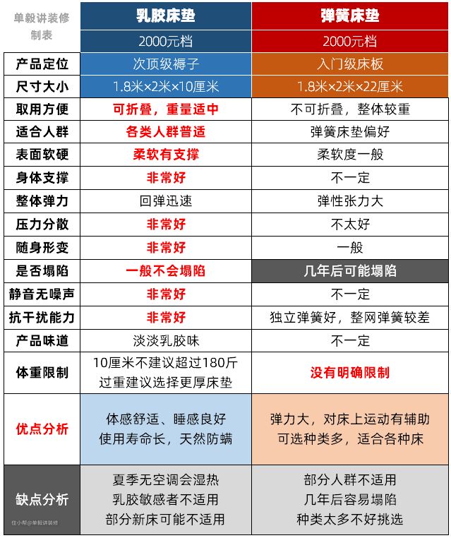 所以,要比较弹簧床垫和乳胶床垫,首先必须限定一个「价位区间」。