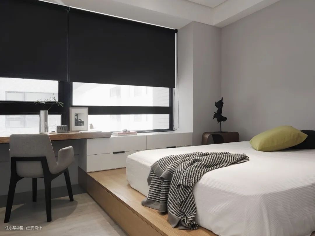 ⭐⭐地台床:好处是地台同时可以和其他的储物柜、桌子结合,巧妙利用空间,颜值高,能储物。地台上放个床垫就能睡觉了,设计简约。