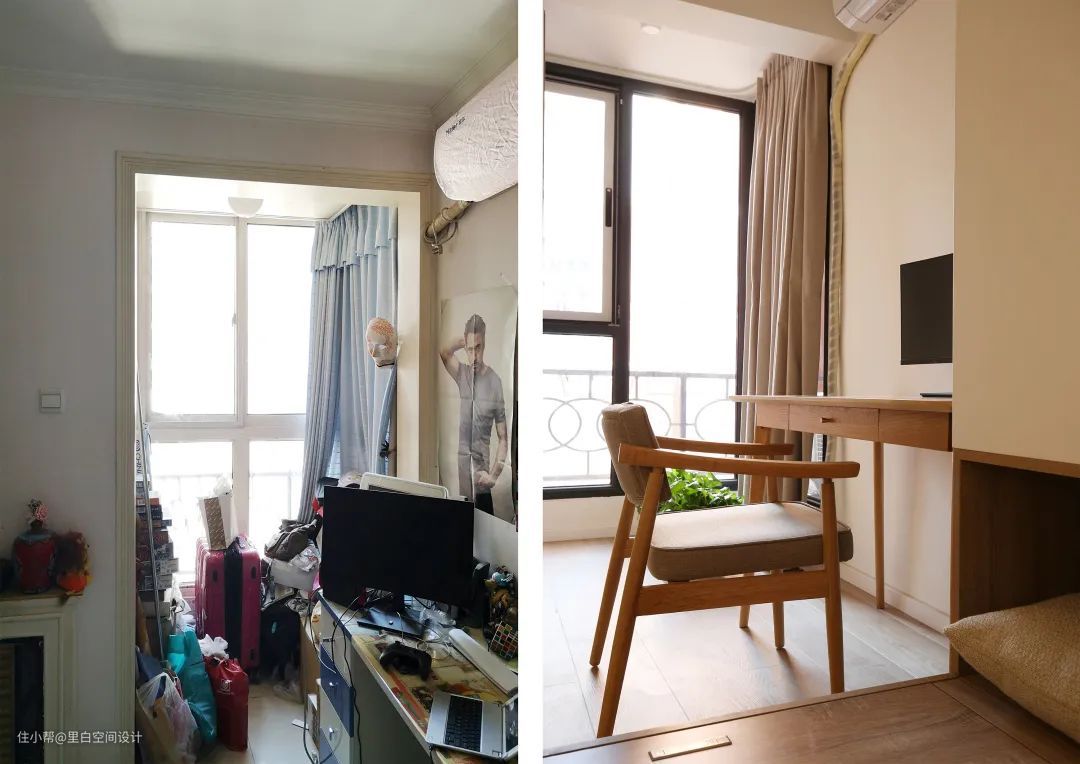 小房间其实不适合挂厚重的窗帘,第一占空间面积,第二视野不敞亮。