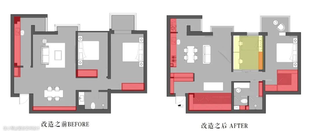 ⭐⭐化解方法:可以让其他空间来承担更多的收纳工作(上面的案例也有说到)比如玄关,比如走廊。
