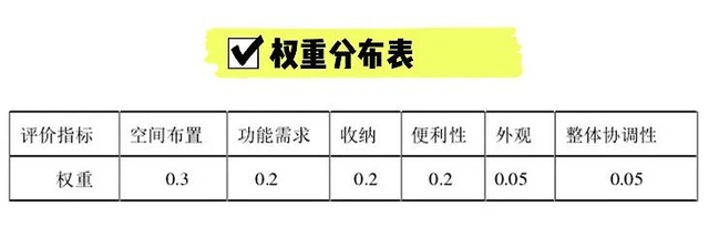 设计围绕着功能使用,以达到这六个权重的平衡:空间布置、功能需求、收纳、便利性、外观和整体协调性!总的来说,基本的设计流程是下图这样的。