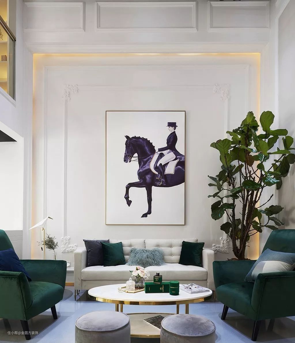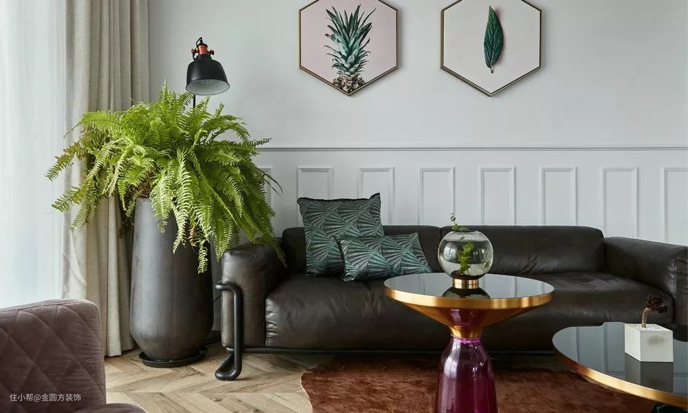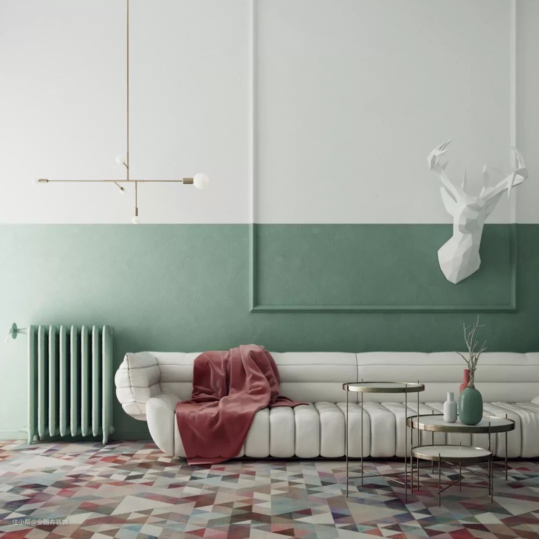 时下流行的“半墙主义”,刷一半、留一半的墙面也可以搭配细框线进行美化,再加上一些富有艺术感的装饰品凸显层次,让空间显得更有腔调和个性。