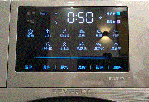 在这块7寸的全触摸式LED屏上可以对洗涤参数进行非常细致的调节,从洗涤时间、漂洗次数、脱水时间、洗涤温度到脱水转速都可以根据自己的需求来个性化调整。