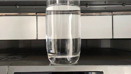 将一杯水放在机器顶部,1400转脱水模式下可以看到,水的震动并不算明显,由此可以看出这台洗衣机工作时是非常平稳的。