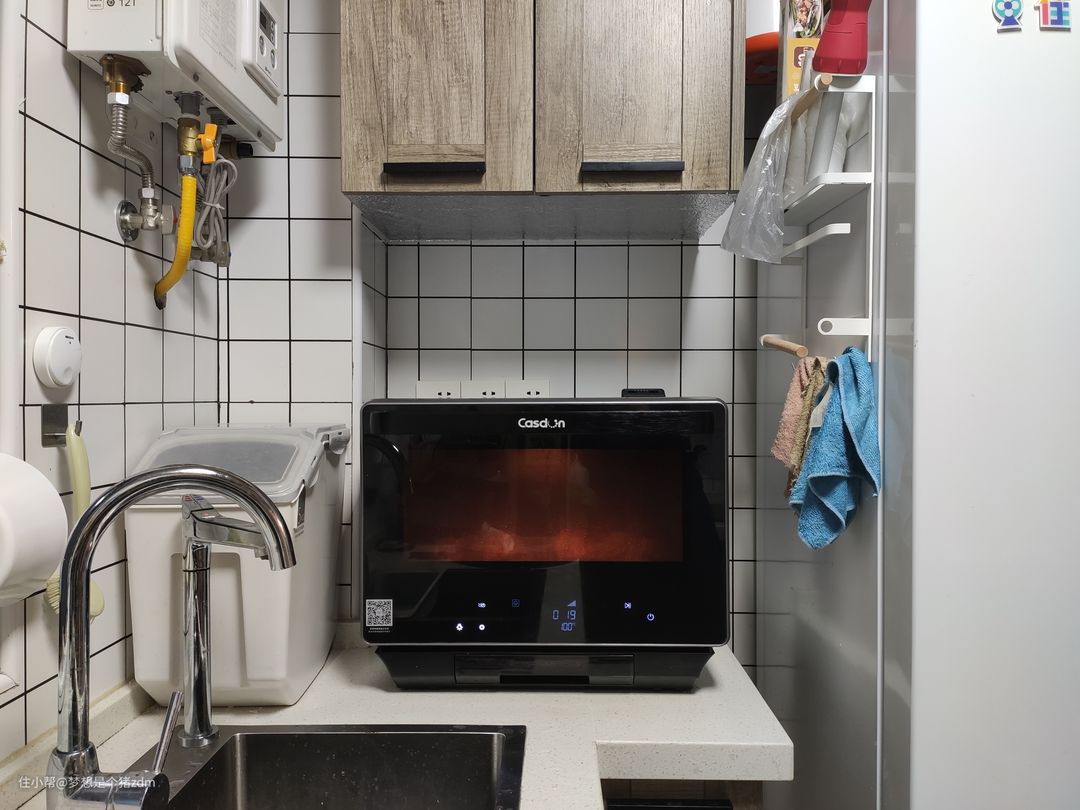 量了一下尺寸,将烤箱和微波炉搬开后,这个位置,刚好能放得下一台大容量的台式蒸烤箱,那就这么愉快的定下来了,换!