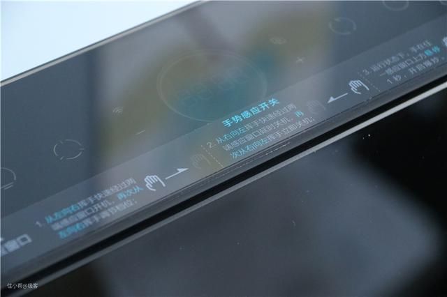 这便是烟机的黑晶操控面板,上面的按键均为触控式操作,当然你也可以手势操控。在提示贴上面,详细介绍了使用方法,以及烟灶如何联动和WiFi的连接步骤,用户可以很轻松的学会如何操控它,手势操控的操控模式就是手掌从左至右,挥或者从右至左,是不是很简单呢?具体详情我们后面来讲。