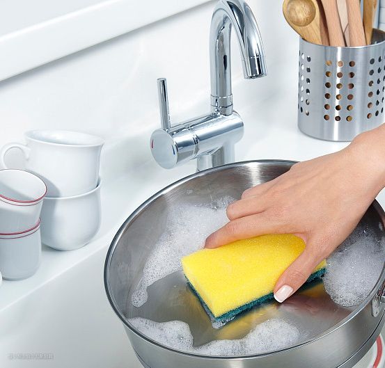 清洗不锈钢锅具:抹布热水小苏打