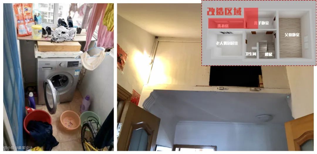 二楼的洗衣间和储物空间,促狭、拥挤,很难使用。
