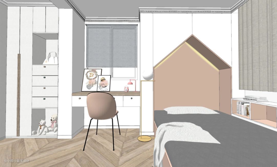 女儿房是公主风,特别是床头的设计,不仅女儿喜欢,爸妈也满意的不得了。女儿的书桌对着窗子,也是《最家计划》设计师Sophie的偏爱了,她觉得女孩应该在优美的风景中长大。