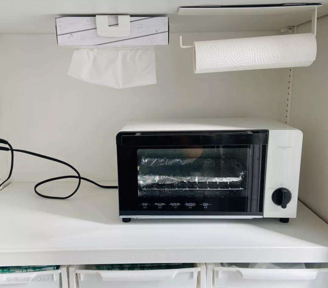 厨房用纸收纳也可以用磁吸原理,将它们收纳到吊柜下面。