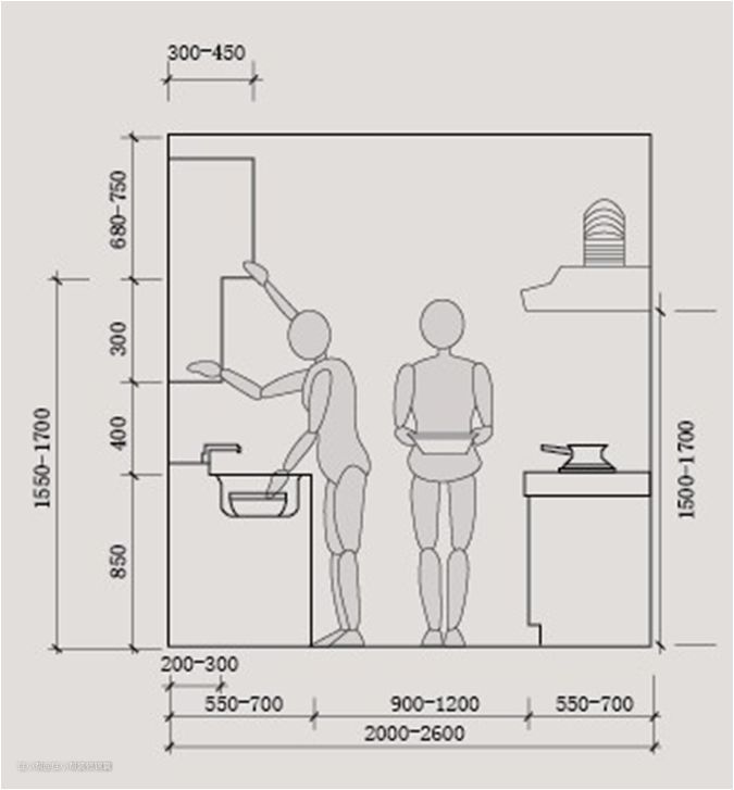 在设计橱柜时,一定要参考人的高度和日常行为习惯。否则即便橱柜再好看,也会影响屋主的使用感。每个家庭的具体情况都会有所差异,一定要设计出适合自己的橱柜。可以参考上图的尺寸,来进行改动。
