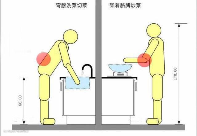 地柜太高容易使使用者使用起来很费力,地柜太低,长久曲体对腰部产生极大的负荷,长此以往腰酸也就伴随而来。