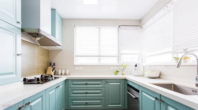 建议:U型橱柜对小厨房不适合这种设计,会显得拥挤。适合家庭成员多的户主,因为可以多人进行做家务也不会有影响。