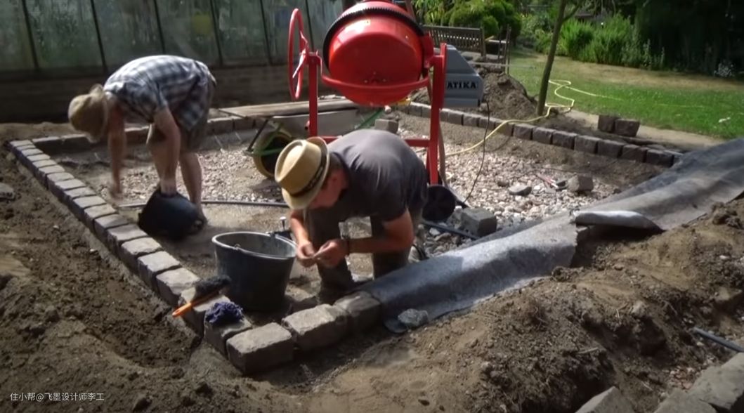 再者在围起来的方形地面里,先铺上一层碎石,再铺设一层细砂;