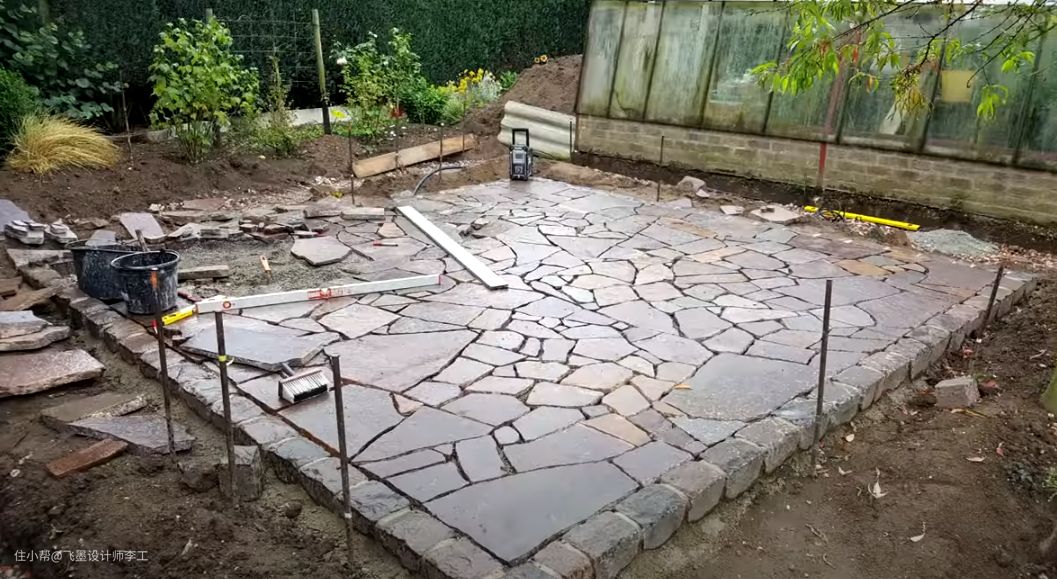 另外国外达人在院子地面铺毛石板的方法值得学习: