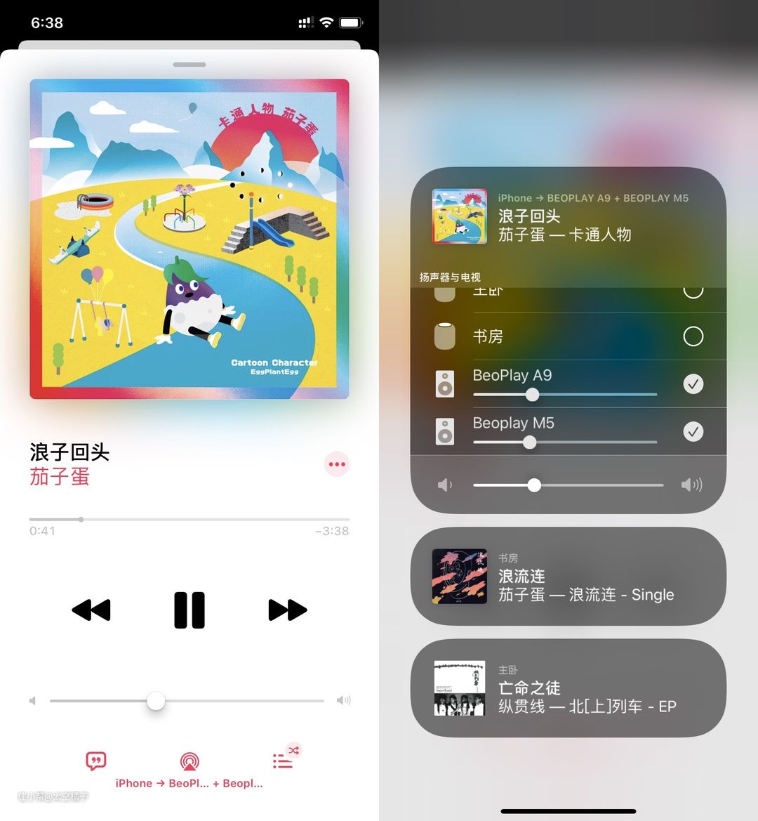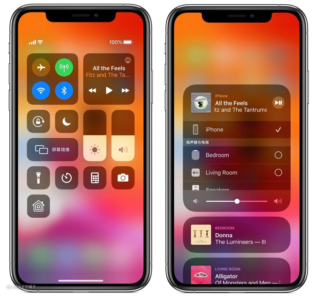使用方法:按住Apple的主屏幕按钮,调出控制中心,然后通过「隔空播放」选择想用的扬声器就行了。