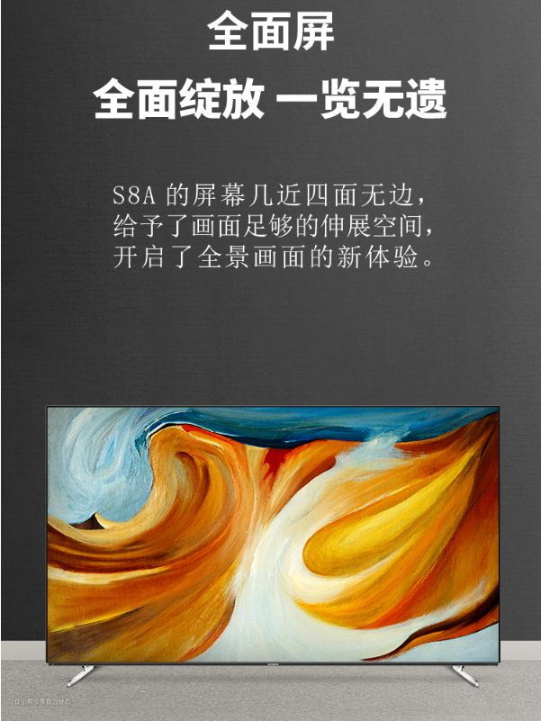 ▲在外观上创维S8A外形简约,无边框的全面屏设计感十分强。在技术方面,支持Dolby Vision,魔音技术+,DST。可以提供非常不错的影音体验。