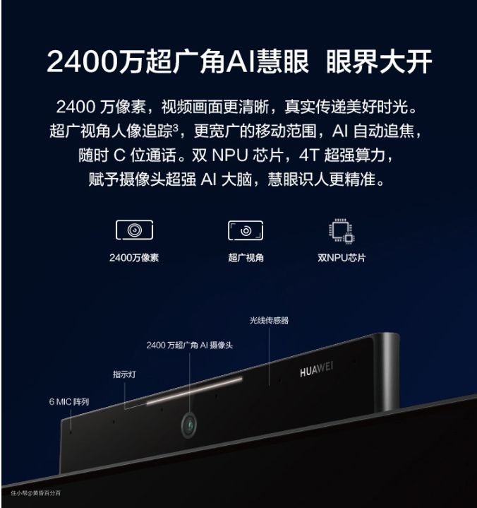 ▲作为区别于普通电视的核心部件,华为为X65智慧屏提供了2400万的超广角AI摄像头用于摄像,6MIC 阵列进行拾音,以及光线感应器进行智能亮度调节,护眼效果非常好,体验过智慧调光显示器的我表示用过才知道多好。