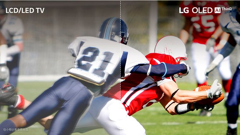 LCD屏幕的拖影问题早在等离子电视大战液晶电视的时候就被讨论过了,当时很多球迷与电视游戏迷都会选择等离子电视而非液晶电视,液晶电视的拖影问题之严重可见一斑,虽然随着液晶技术的日趋成熟,索尼等厂商的高端液晶屏拖影问题不那么严重了,但是在看动作片或者球赛的时候还是会有一定的影响。这也是索尼等厂商一方面继续深耕液晶电视市场,一方面下大力研发OLED电视的原因。OLED得益于独立控制每一个像素点,从而获得了更快的响应速度,大幅降低了拖影。