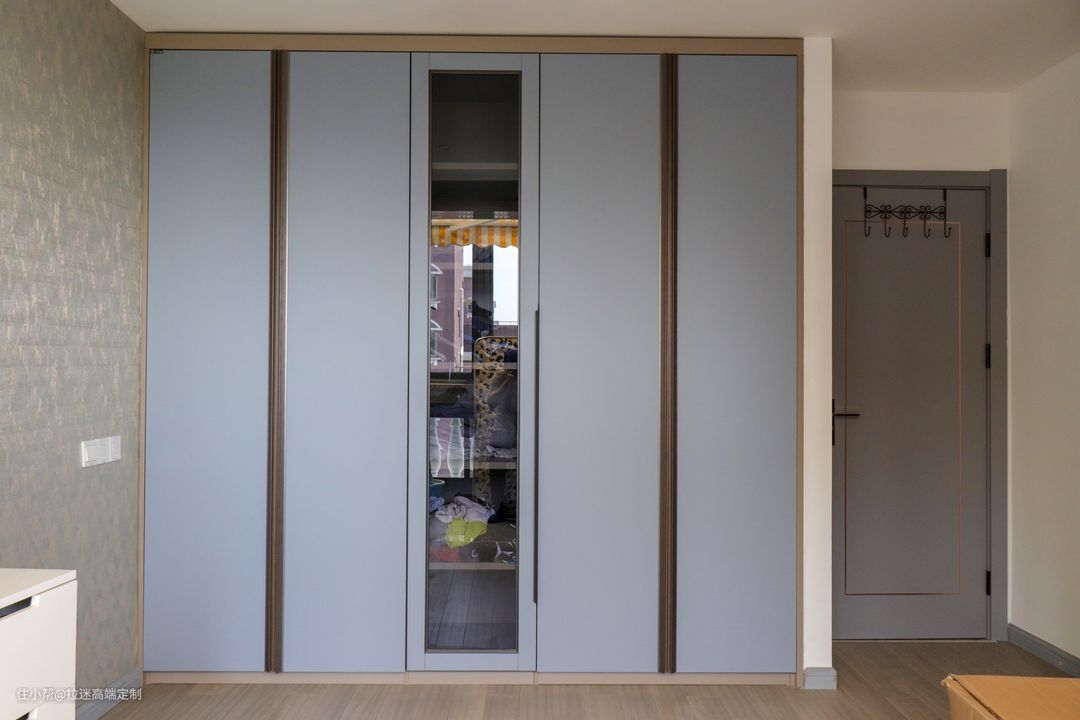 房门与衣柜同款同色,更具整体性!加上金属线条与拉手勾勒,精致又好看