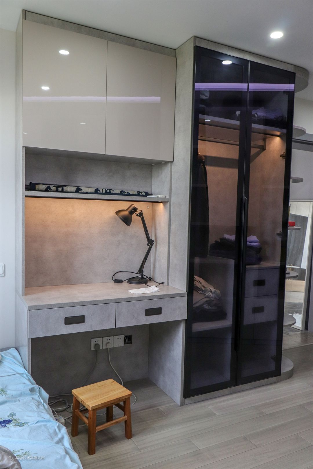 拉迷全屋定制的好处在于,能提升空间利用率,不浪费每一寸空间,不规则的房型也能设计的很好看。柜子、背景墙、门都是根据整体风格进行搭配,瞬间就提升了房间的颜值