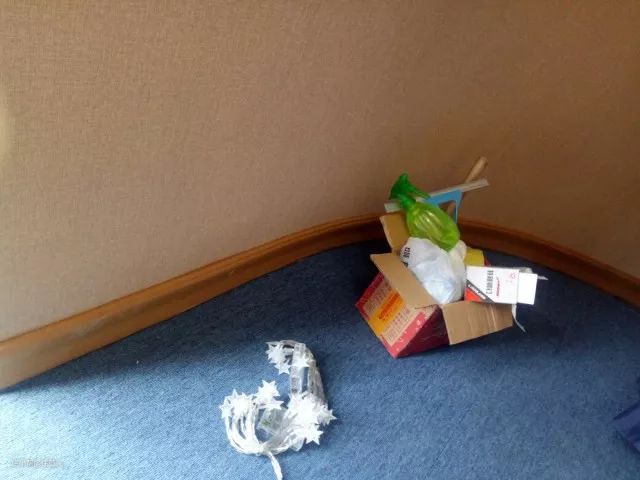 密度板踢脚线和安装和实木类似,都需要打钉子固定,事后用同色漆膏补上钉子眼,两段踢脚线的接缝也用漆膏填充。