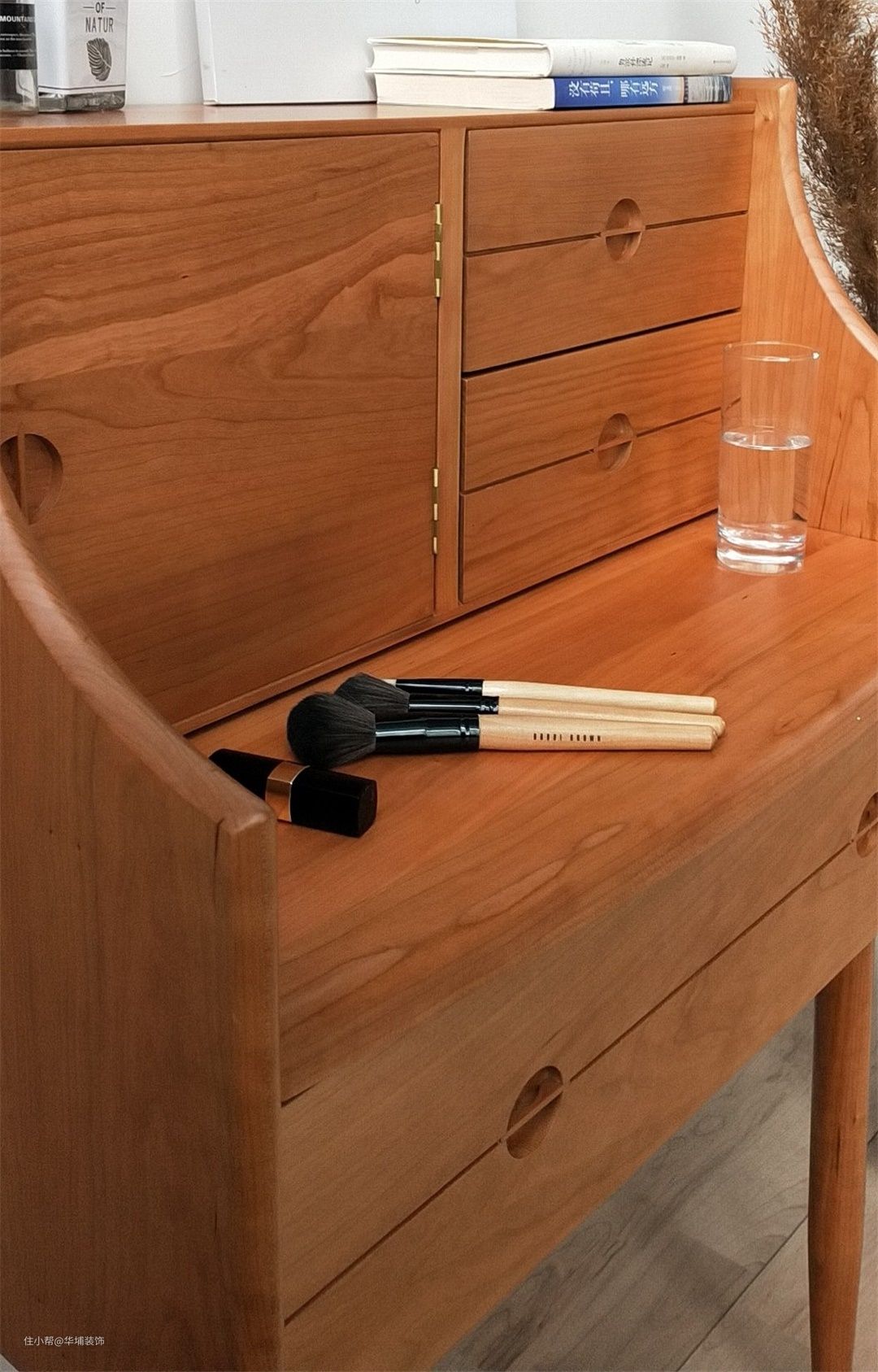 樱桃木纹理规则、笔直,加上深红色的生长纹理,受到很多女性的喜爱。心材和边材的颜色差异大,心材颜色深,边材颜色浅,成品家具非常漂亮。