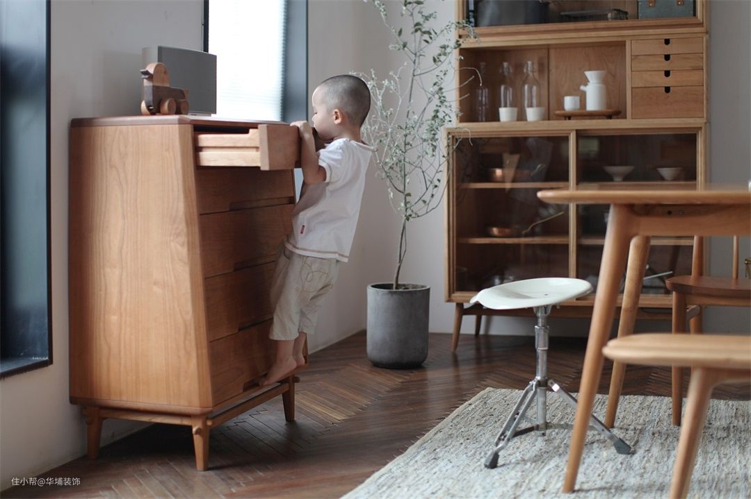 因为松木的生长周期长,造成它的年轮笔记密集,质地柔韧。基于木质较软的特点,非常适合用在儿童房。