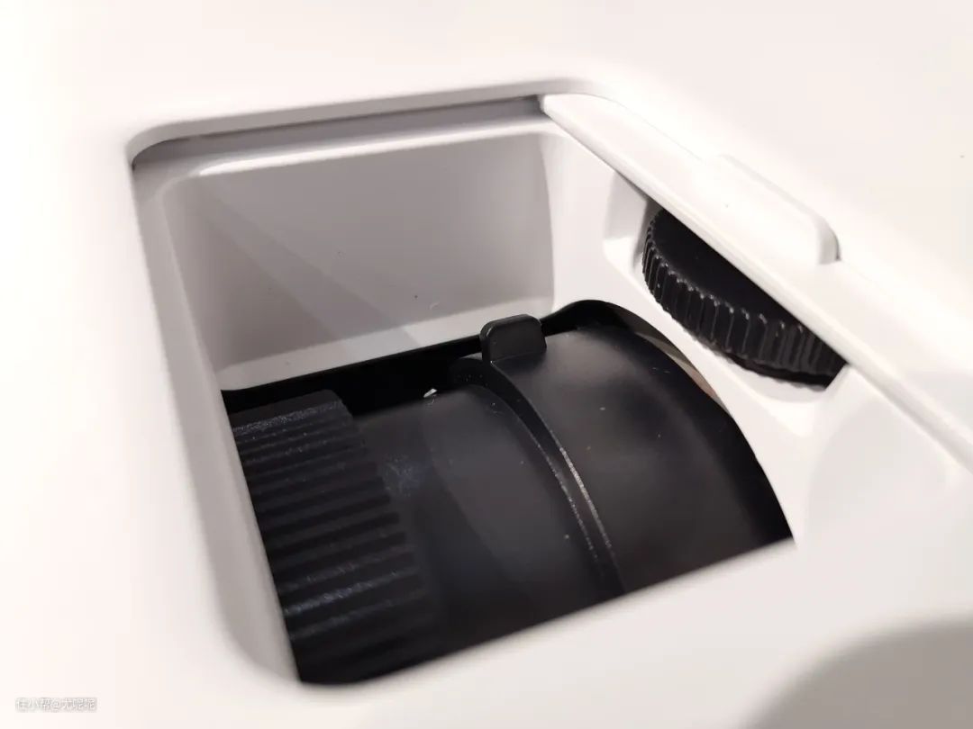 除了正面外,投影的其他面皆为白色配色,十分的清爽。功能按键区以及各种对焦环、变焦环和镜头垂直位移旋钮都设计在顶部。