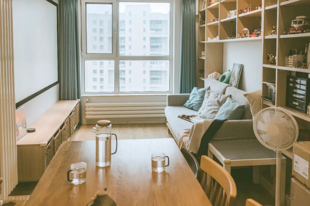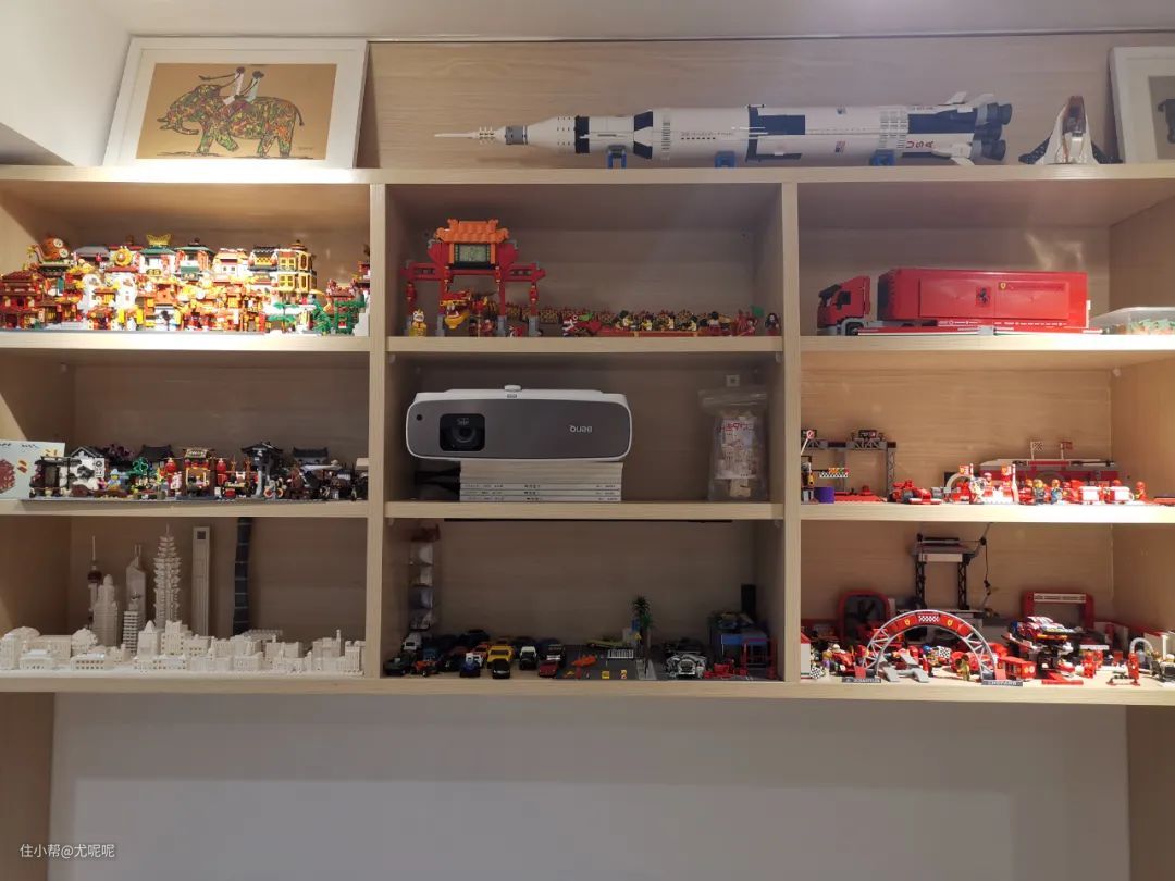 因为我家空间太小,再装个投影支架实在是太丑,所以投影就被我巧妙的安置在了书架里边。