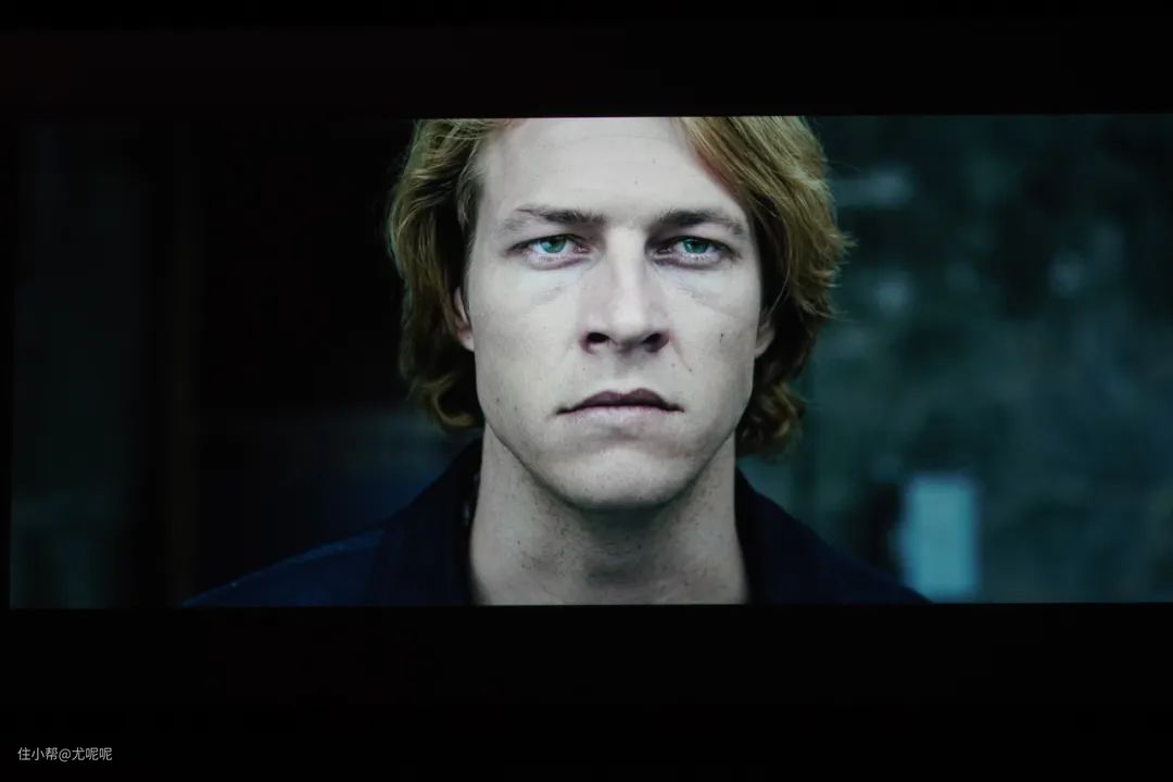 极盗者中男主绝望的表情,4K的表现力不单单是可以看清头发,而是细微到表情纹路和眼神的情感都能直观的感受到,这种感染力是1080p投影无法达到的。