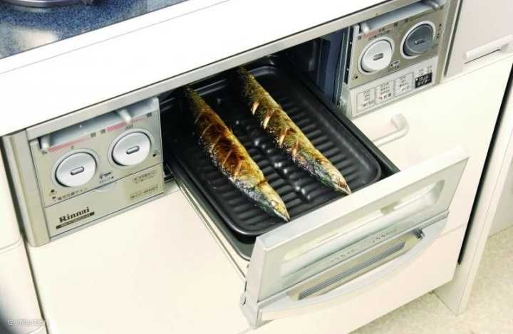 燃气灶底下带小烤箱,用来烤鱼、烤肉、烤蔬菜特别快。