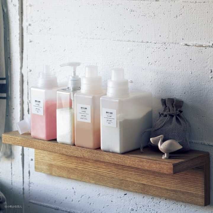 厨房的调料、卫生间的沐浴液,也都会装在统一的瓶子里。