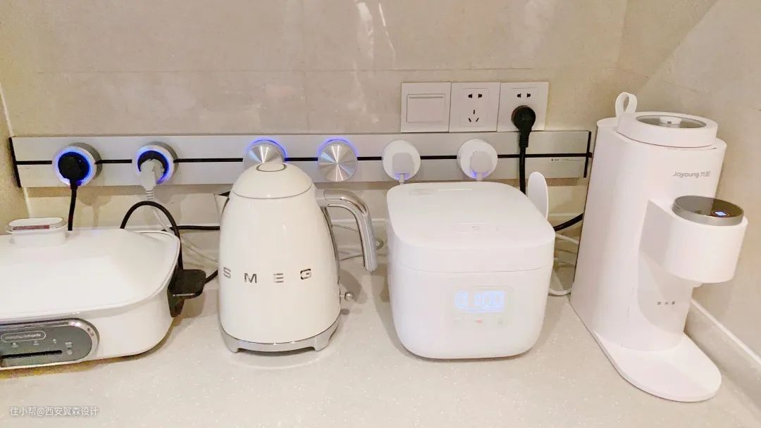 ▲由此可见,厨房要装的插座绝对不少于10个,如果厨房空间较小,那些易闲置的小家电最好别买,不仅使用频率低,还占位置。