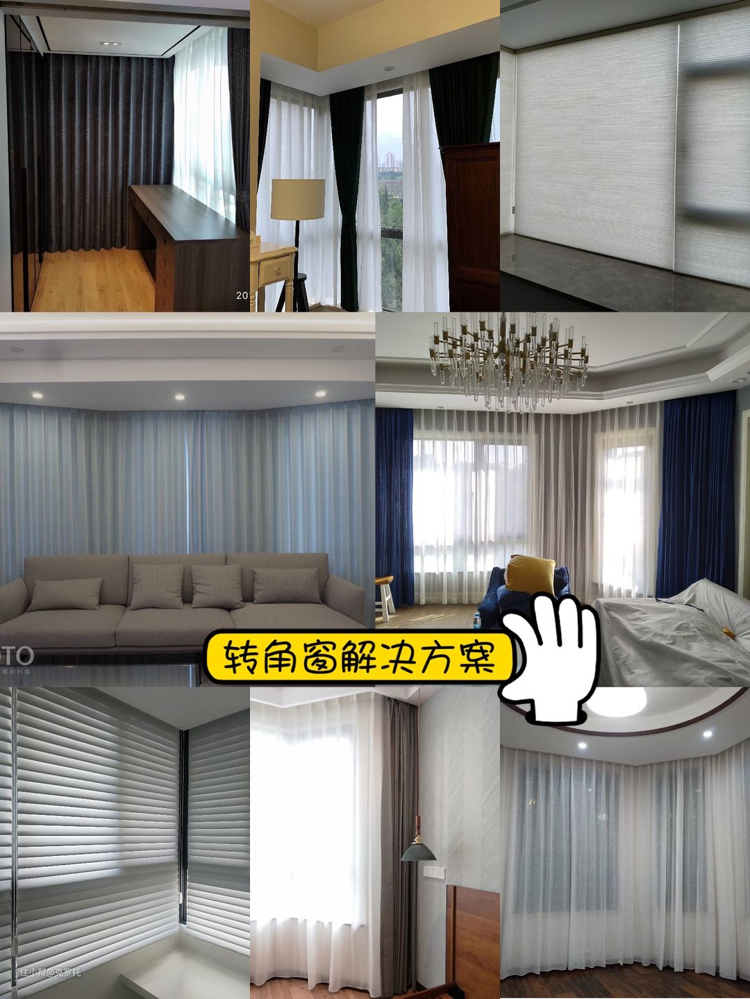 简约风格的家居风格,转角窗也适宜用罗马帘、卷帘、百折帘。