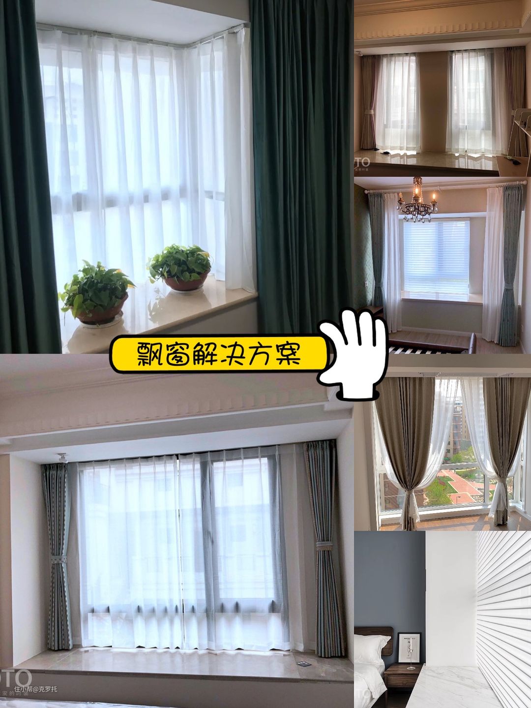 如果是有强烈阳光照射的飘窗,建议采用双层的窗帘设计,其中窗纱可贴玻璃窗合围一层,窗帘布垂落地下。