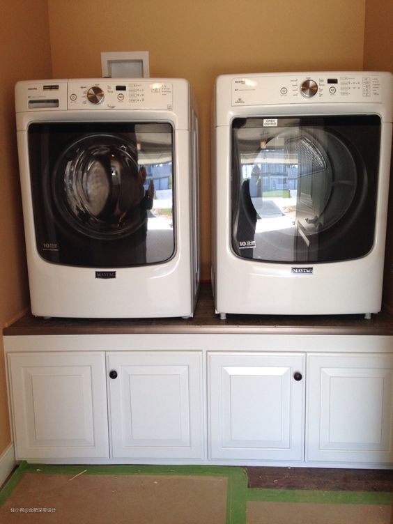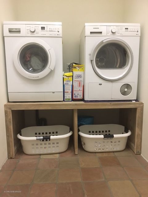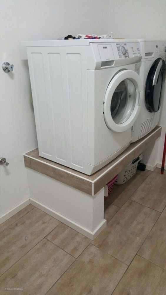 不想砖砌的话,咱们也可以换种法子,就是用柜子或者木架子等,只要保证了足够的承重性,效果并不比砖砌的差,如果你家洗衣机是放在卫生间的,一定要注意下选择防水防潮的木质。