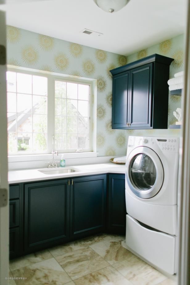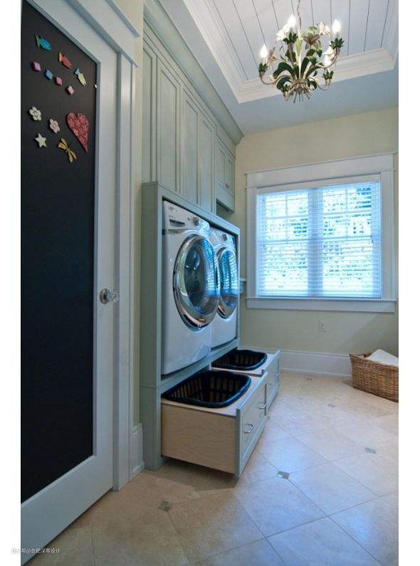 如果你家准备打洗衣机柜的话,可以跟师傅提前沟通,确定尺寸和大小,将洗衣机底部留出柜子,下面这几种款式给大家参考下: