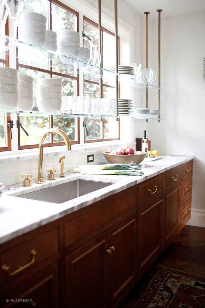 【挂】就是东西能挂墙上的,绝不放在厨房操作台上!释放台面空间,这样洗切炒就方便多了!