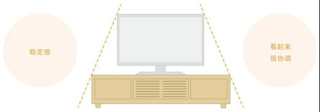 电视柜的宽度大于电视机宽度,可以增加稳定感,视觉上更平衡。再者,如果将来更换电视机,几乎都是往大了换,因此在选择电视机尺寸时,要着眼于未来。