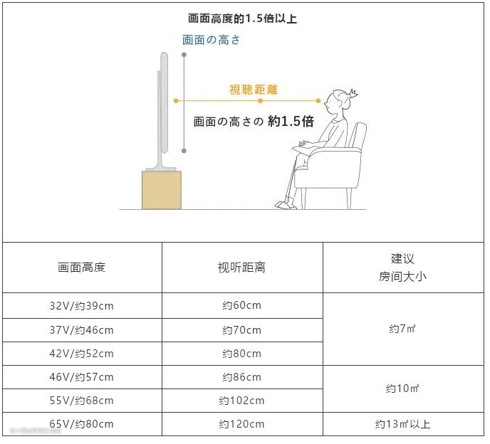 视听距离合适的观看距离,4k电视为“画面高度的1.5倍”以上,全高清电视为“画面高度的3倍”以上。