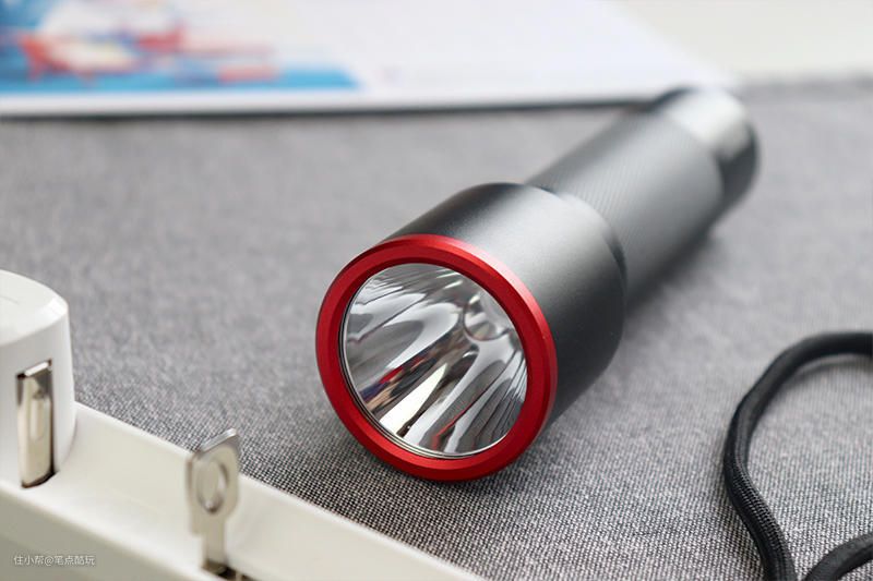 整机全铝合金材质,强度高,能经受住户外党的磕碰折腾,老式手电的笨拙也被红黑撞色和精细喷砂表面一扫而光。